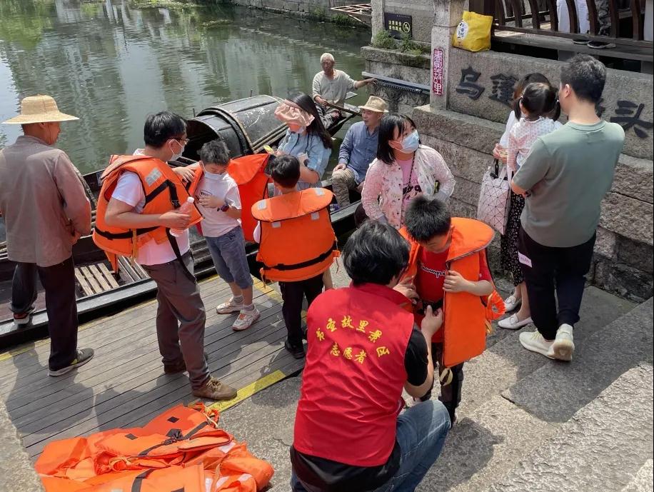 志愿者们帮助维持景区秩序,引导游客文明旅游,他们用一抹志愿红,为五一增添色彩。