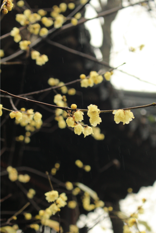绽放的腊梅,在蕺山上巧笑嫣然。以花为尺,度量这一季的芳香。花里,还带着丝丝的甜味。