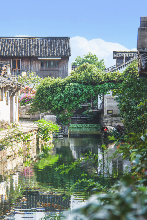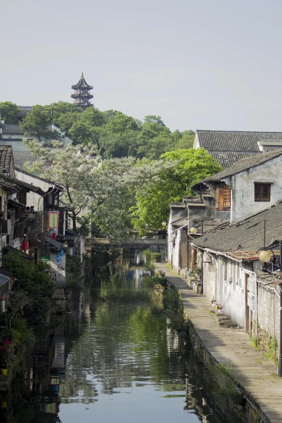 恰此时四周阒然,尘嚣渐远,惟有夏风微凉,水道内碧波荡漾,小桥上人来人往,一把摇椅,细数时光。