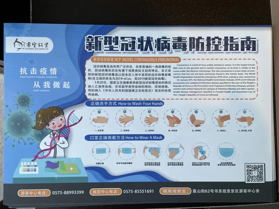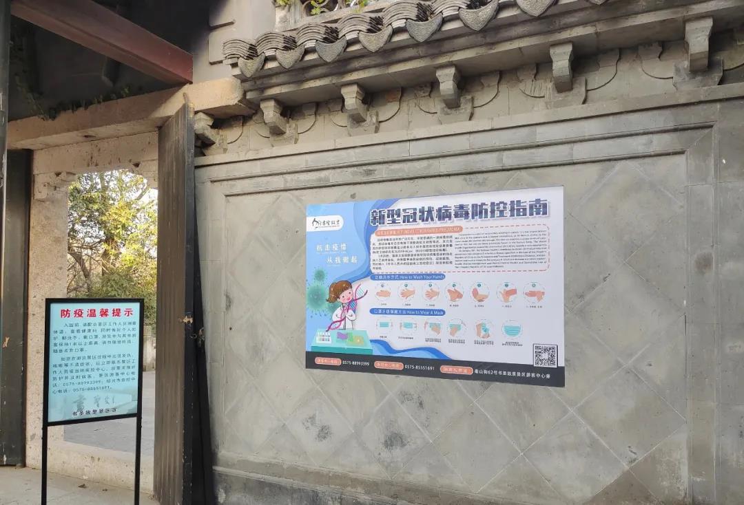为全力做好新冠疫情防控工作,确保游客生命安全,绍兴书圣故里景区按照省、市、集团等上级部门有关疫情防控的要求,对照2020年《浙江省新冠肺炎防控旅游景区有序开放工作指南》,结合本单位实际,召开景区疫情防控工作部署会议,成立“新型冠状病毒肺炎疫情防控工作领导小组”,采取积极有效的举措,确保景区防控各项工作落实到位。同时明确各部室职责,合理分工,切实做好景区游客接待工作,维护景区和社会安定。