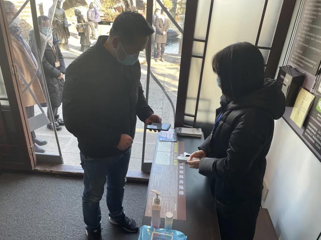 模拟游客到景区参观游览时,工作人员对其进行测温亮码工作,发现体温或健康码出现异常,启动应急预案。