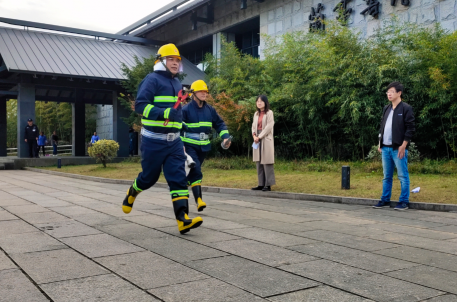 为确保景区在遇到突发火灾时,能在最短时间内充分发挥消防安全保障机制作用,快速、高效、有序地实施灭火工作,防止人员伤亡和最大限度地减轻财产损失,进一步普及消防安全知识,增强员工消防安全意识,结合消防宣传月各项活动,11月17日下午,兰亭景区在书法博物馆广场组织全体职工和安保人员进行了一次消防安全实战演练。