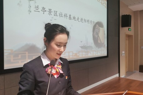 授牌仪式结束后,兰亭景区高级讲解员俞昕为学生们讲述了《兰亭集序》诞生、成长、消亡、再生、衍变、扩展的过程。阳明学院19级学生分享了她们在兰亭景区志愿讲解服务时的感想。