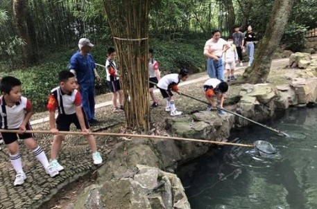 7月19日,塔山中心小学的小朋友和家长们,在兰亭景区开展了今年首场暑期定制版亲子研学游活动。