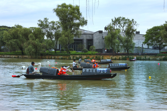 整齐划一的船桨、奋力挥动的臂膀、肆意挥洒的汗水和慷慨激昂的呐喊……别出心裁的趣味乌篷船比赛充分展现了巾帼女子健康、自信的活力风采。