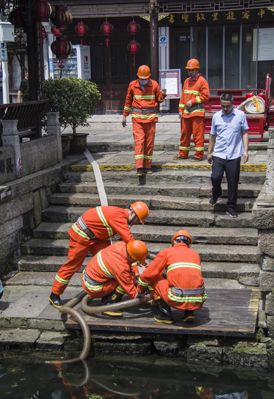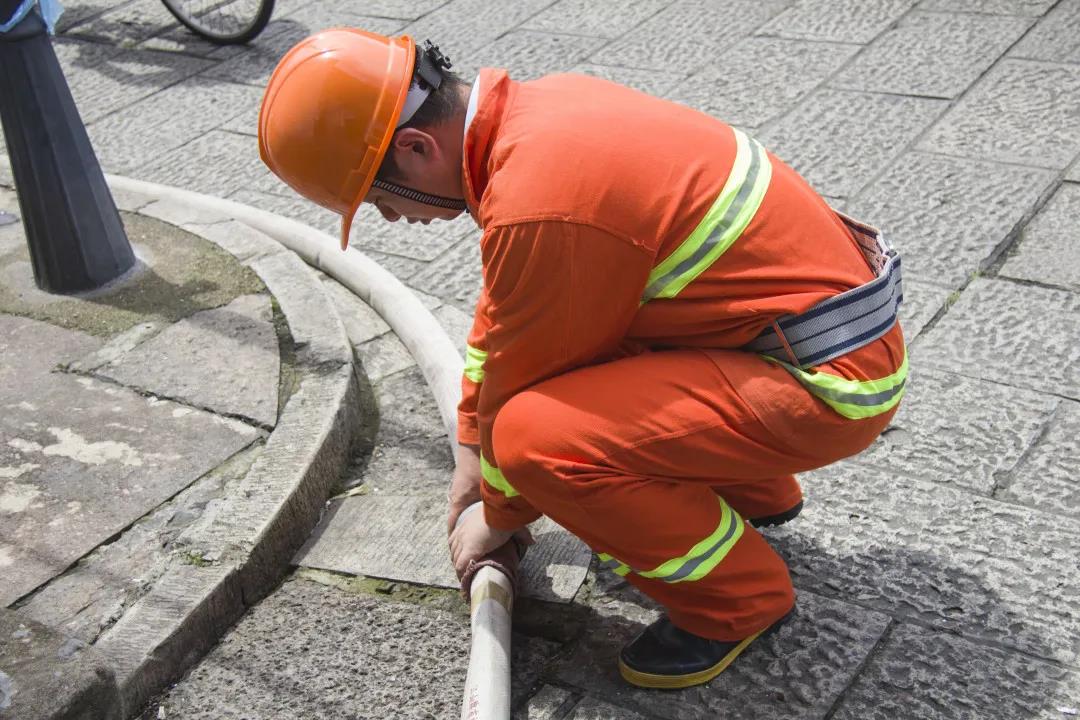 2.在距离起火点5米左右处,放下灭火器。在室外使用时,应占据上风方向。