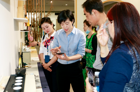 考察团在博物馆领导的陪同与讲解员的引领下参观了兰亭书法博物馆。由于临沂是书圣王羲之的出生之地,故考察团着重参观了基本陈列“一日千载”,并就和此展相关的展览设计、文本内容、展品来源等方面与博物馆陪同人员进行了交流。上午11点,一行人来到会议室,由兰亭书法博物馆陈列保管部负责人向他们介绍了博物馆基本陈列、开馆至今的临展以及巡展的详细情况。双方针对博物馆概况、展陈策划、空间利用、展览走进高校等内容进行了分享、沟通,氛围友好而热烈,在共同探讨中获益匪浅。