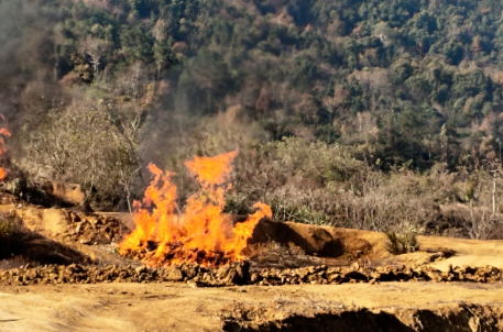 演练模拟突发的山火沿着山脚开始迅速蔓延,为了及时控制山火,兰亭街道森林防火总指挥孙洁立即下达指令,要求兰亭街道森林消防支队马上前往着火点扑灭山火。消防队员们首先采用干粉弹对火势进行控制,然后立马由人工组手持灭火拍、风力灭火机等设备,对剩余的明火进行了扑灭。大火扑灭后,消防人员再次“引水灭火”,并留足看守人员,防止出现死灰复燃。