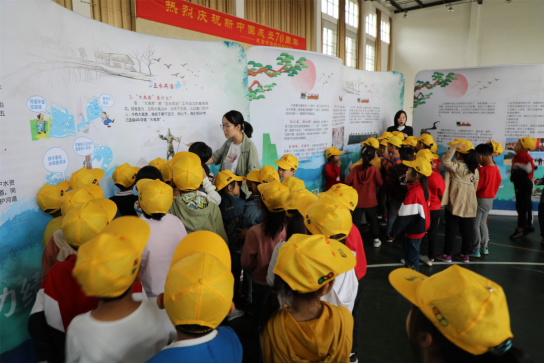 展陈内容分为大禹功绩、大禹记忆、大禹祭典、“五水共治”等部分,为同学们展示大禹的家世、生平,以及他在绍兴留下的古老遗迹、历史记录。“五水共治”这一板块,则将护水、爱水的思想融入中小学课外知识拓展中,增强青少年的环保意识,普及“五水共治”知识。
