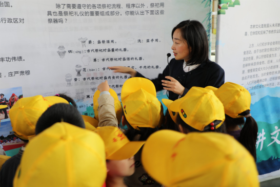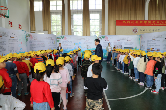 在展览区,同学们观展、思考,收获了不少与大禹以及“五水共治”相关的知识;在多媒体教室中,大禹陵景区讲解员还为大家带来了生动的一堂课——《缵禹之绪,追禹之迹》。