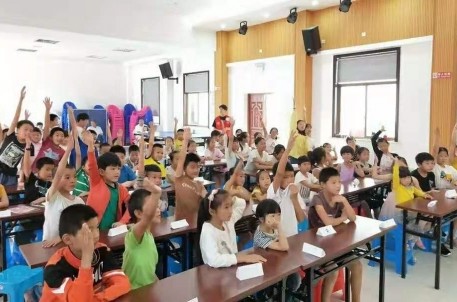 “兰亭的故事”宣讲团成员,两两一组,精心编排,如:小小朗诵家培训,书法小课堂,垃圾分类小知识,红色印迹故事分享等特色课程,每天到两个“小候鸟”营地,为大家呈上一堂堂生动的课程,场场爆满,同学们活力四射,精气神儿十足!