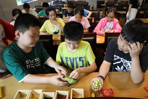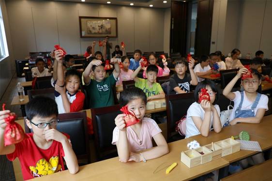 动画结束后,大家在学堂上亲手制作五谷祈福袋,以追思前贤“肇始华夏、泽被万代”的不朽功绩。
