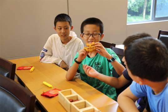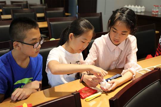 为让大家更好地了解斗拱的连接方式,学堂为同学们准备了斗拱模型。同学们根据指导互相帮助,将模型的木块结构严密扣合,达到“天衣无缝”的程度。