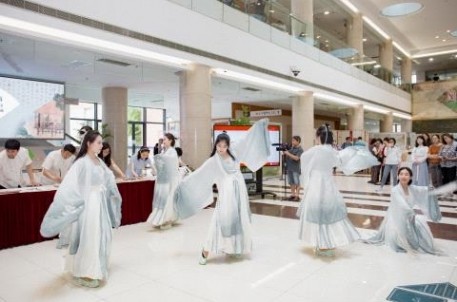 流觞组工作人员经过为期一个月的紧密排练,终于在兰亭嘉会•流觞雅集中一展风采,并于近日随同“中华文明高校行——《兰亭的故事》走进上海交通大学”的展览中惊艳亮相,使展览更有动态立体的文化烘托,吸引了广大师生朋友的驻足欣赏。