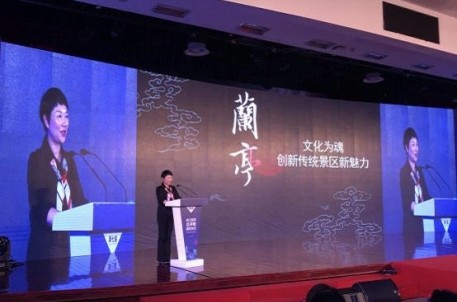 景区始终以“弘扬传统文化,深挖景区内涵”为己任,引进和举办了许多文化特色鲜明、社会反响良好的展览,如:中国书法最高奖“兰亭奖”作品展、中国书坛双年展.兰亭雅集42人展、徐渭和吴昌硕大展等等,使传统文化迸发出勃勃生机。在引进来的同时,景区还把兰亭的文化输出去:一是走进校园:去年,我们参与启动了中华文明高校行——《兰亭的故事》全国高校巡展活动。一年内,先后走进北大、浙大、浙工大等八所高校,两万余名莘莘学子接受传统文化滋养和熏陶,高校微博、微信点击量达20万余次。二是走向世界:《兰亭的故事》先后赴新西兰、斐济巡展,向世界展示书法的魅力,让世界聆听兰亭的声音。
