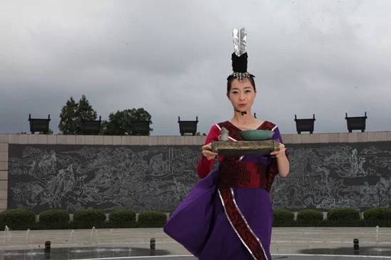 向禹王敬献江淮河汉圣水。由击鼓将军、撞钟将军护送长江圣水、淮河圣水,献给禹王,寓意为百川归海、众志成城。