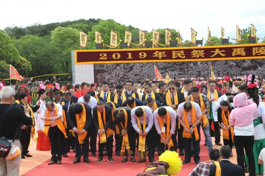 公祭、族祭、民祭大禹活动,都是华夏儿女、大禹后代对共同的中华先祖——大禹所表达的缅怀之情。华夏子孙十三亿,会稽山下缵禹绪。让我们在祭禹这项中华传统礼仪里,高敬先祖的丰功伟绩,感怀先祖之精神、气节,传承大禹精神,在这新时代共同携手向前,实现中华民族伟大复兴!