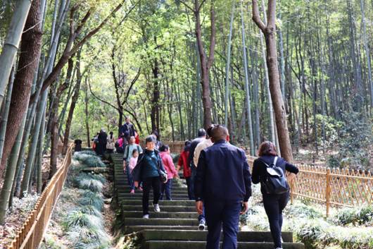 趁着阳光明媚,不少游客乐于三三五五地结伴成群,登高踏青,呼吸自然、新鲜的空气。行走于石帆山山道之间,幽深寂静、清美秀丽,令人身心俱静,悠然自得。