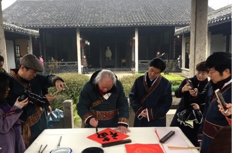 今年的大年初一上午10点,按照惯例,景区主要领导、市委宣传部副部长、市文化广电旅游局局长何俊杰、以及兰亭书会的书法家们首先在景区右军祠完成晋圣仪式。与年不同的是,今年各位书法家们在晋圣后一同齐聚墨华亭,迎来书法圣地兰亭的首届“年度汉字发布会”。由兰亭书会会长王建华宣布“融”为本年度汉字,并开笔书“融”,其余书法家均纷纷挥毫,墨华亭下墨飞花,与游客朋友共同见证这一有意义的时刻!