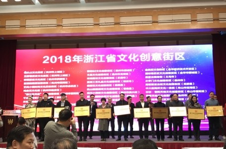 1月18日,浙江省聚集数字经济、推进文化产业高质量发展暨文化产业促进会年会在杭州世贸君澜饭店召开。会上表彰了2017-2018年度浙江省重点文化产业园区、2018年度浙江省文化创意街区和第三批浙江成本型文化企业,兰亭景区副主任史春霞代表景区上台领取了“2018年度浙江省文化创意街区”奖牌。这是兰亭之镇街区连续第二年被省委宣传部授予省级文化创意街区的荣誉称号。