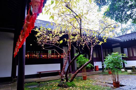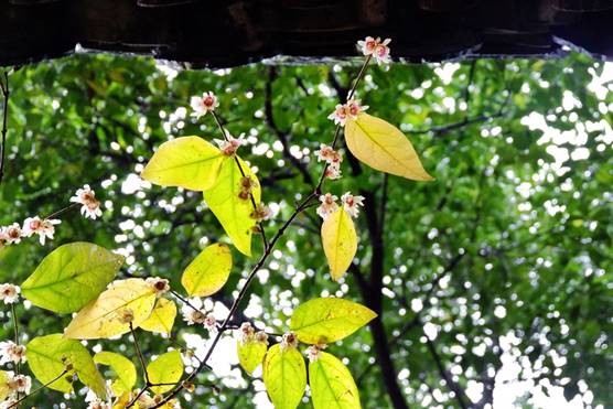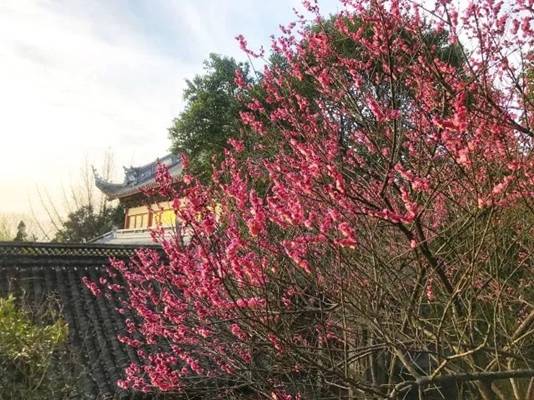 在禹庙旁的墨瓦下,映出一小片一小片明黄的活泼颜色,再走近一些,原是几树蜡梅正茕茕然地盛开着。