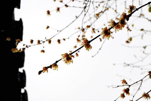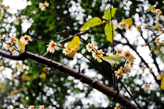 蜡梅的嫩黄花朵缀在枝头,极温柔地、小心翼翼地开放着,提醒着大家腊月既至,春亦不远。