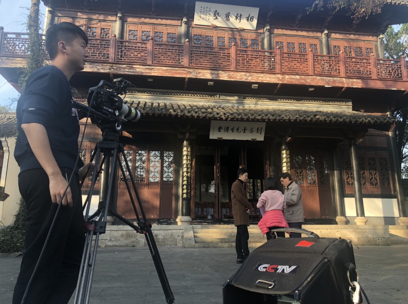 这个帅气的长腿欧巴怎么这么眼熟?这不就是中央电视台中文国际频道主持人吴鹏嘛!正在把蕺山书院的由来娓娓道来!
