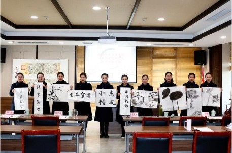 在“业务能力”考核过程中,讲解员们个个精神饱满、妆容精致,或灵动、或大气。个性独到的讲解配以ppt演示,将评委们引入一个个生动鲜活的精神世界,追忆着承载绍兴一段段漫长峥嵘的历史。“五星”讲解员胡安娜,经验十足、亲和力极强,结合景区打造研学游背景,绘声绘色地给与会人员上了一堂“纸文化书法课”;四星级讲解员丁雪颖,灵气满溢,情绪饱满,结合时下热播剧给在场嘉宾带来了一场“亭”建筑文化盛宴;俞昕,傅兢娴两位虽是“讲坛新人”,却“潜力十足”,端庄的姿态、生动的讲解、良好的互动,让评委听到、看到了新晋员工的崭新面貌。而在随后的才艺展示环节中,讲解员们挥毫泼墨,或书法,或绘画,展现了兰亭人儿浓郁的文化滋养。