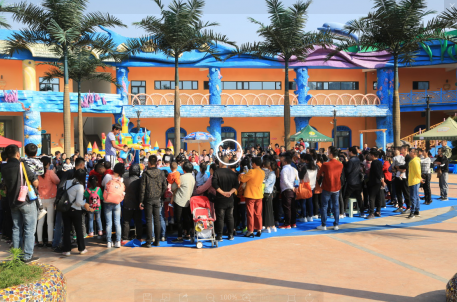 表演散场,人群的注意力又转向了一个个神灵活现的白垩纪霸主。它们摇晃着尾巴,张大嘴巴,发出嘶吼的声音。可现如今小朋友们似乎也都知道它们是假的,并不害怕恐龙,胆子大些的上前去拍打拍打,或者走上前去比比嗓门。还有些小朋友在园中玩着脚踏船、蹦床、淘气堡、捞捞金鱼等,好不欢乐。原来绍兴梦幻水世界也在逐步探索非夏季与其它产业的合作之道。