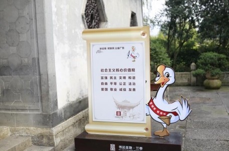 三是强化宣传确保效果。兰亭景区坚持宣传引导,通过景区文明宣传栏、LED电子显示屏、固定宣传架等媒介,积极开展文明宣传,丰富景区宣传标语。景区结合自身实际,在游客中心和书法博物馆大厅,利用电子显示屏播放“文明出行”、“垃圾分类”等公益广告;并在鹅池、流觞亭、王右军祠、碑林等主要景点均有设置“社会主义核心价值观”、“讲文明树新风”公益广告,确保景区内文明宣传氛围浓厚,进一步提升文明自律水平。