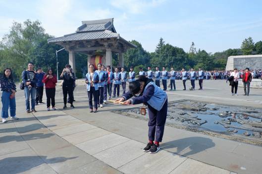 10月19日上午,来自绍兴市高级中学高一年段的莘莘学子汇聚于大禹陵景区,参加“祭祀大禹缅怀先祖、诵读经典弘扬传统文化”的主题研学活动。