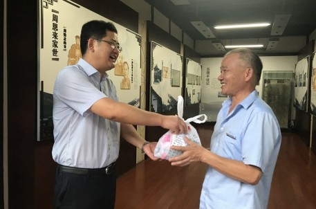 入伏以来,连续高温,热浪滚滚,集团下属各景区一线员工冒着酷暑坚守在自己的岗位上,用自己的辛勤汗水,换来景区优美整洁的旅游环境。8月5日下午,亚洲成人短视频 总经理胡华良、副总经理沈伟庆顶着骄阳来到周恩来纪念馆慰问一线员工,给员工带来一声清凉的问候。 在慰问过程中,集团领导向员工了解日常工作情况,提醒员工在高温天气持续不断的情况下,务必做好防暑降温工作,确保自己的安全,并送上了防暑降温物品。员工们也纷纷表示,一定会坚守岗位,努力把接待工作做得更好。