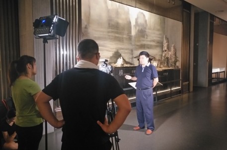 为了深度融入当地文化,栏目组以“兰亭书圣——王羲之”为切入点,在了解兰亭故事的基础上,分别对各点进行了细致的拍摄。除了在曲水流觞景点重现东晋永和九年王羲之等文人雅士饮酒赋诗的雅集场景外,还专门邀请了兰亭书法博物馆副馆长喻革良讲述作为兰亭守护人,近三十年来亲历的兰亭发展与变化。采访最后,喻主任感慨万分,在提及王羲之的启蒙老师卫夫人对王羲之的书法影响时,他说到:“虽已过去1600多年,但卫夫人当时对王羲之‘点像高山坠石,横若千里阵云,竖如万岁枯藤’的书法理念一直对我非常受用,影响很大”。