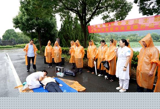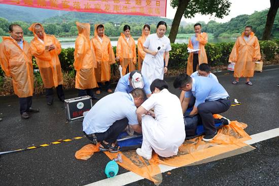 急救讲解。绍兴市文理附属医院ICU护士长及120急救分站站长现场讲解、演示如何抢救溺水者。