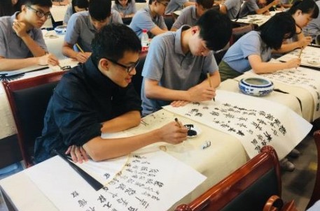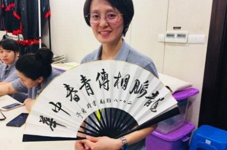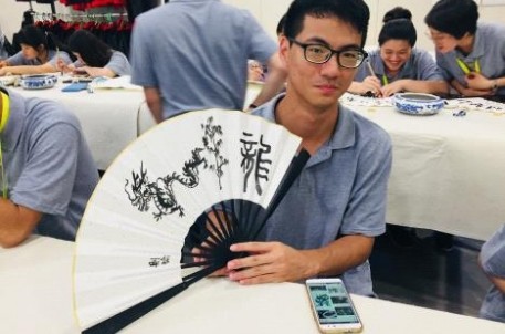 大陆、台湾一衣带水、血脉相连,两岸同胞同宗同族有着相同的传统文化背景,而书法,也是许多台湾学生自小学以来就开始研习的传统国学课程,兰亭,作为祖国书法文化的发源圣地,必将承担起书法文化弘扬及传承的教育使命。本次活动,景区特邀浙江省工艺美术大师、浙江省书法家协会会员王仲章老师,结合景区特色书法研学活动项目扇面写字,针对扇面书法发展简史、扇面写字布局、扇面写字技巧运用、扇面装裱等为同学们开讲了一堂专业而生动的书法课。同学们纷纷在现场挥毫泼墨,写下以“龙脉相传 青春中华”为主题的扇面作品,将本次台湾大学生夏令营在兰亭的活动推向了高潮。