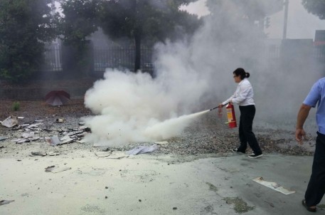 随后,全体人员赴实地进行模拟火灾应急实战演练。在教员的示范指导下,参训人员模拟发现火情,立即报警,同时使用灭火器灭火,控制初级火情,接通消防栓,架设水枪,彻底消灭火源。