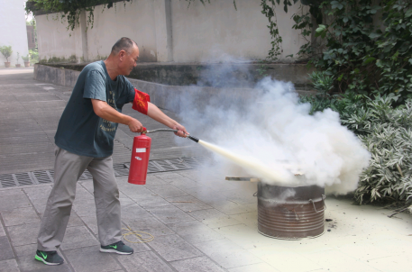 28日上午,全体职工冒着酷暑开展消防安全知识学习和灭火器的实战演习活动。活动中,我办安全员首先对火灾来临的一些急救措施和防灾、救人、灭火、求援等一系列重要流程做了详细的讲解。然后全体职工依次使用灭火器进行现场扑灭。安全员对灭火器使用不当的情况进行指正,确保我办全体职工能在火灾发生时候正确使用灭火器,并在第一时间抑制火情。