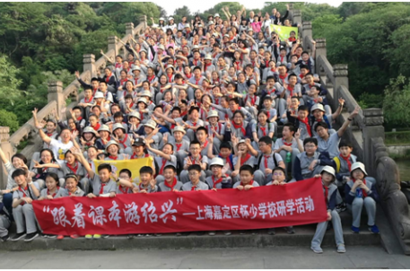 近日,上海市嘉定区怀少学校组织师生来到东湖景区参加“跟着课本游绍兴”研学游活动,活动结束后,全体师生在景区揽月桥上合影留念。