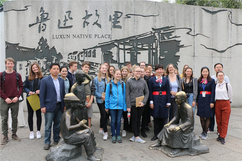 4月12日上午,25位来自德国彭茨贝格高级文理中学的师生走进鲁迅故里,参加“三味书屋——鲁迅故里研学游活动”。这是他们第一次来到绍兴,认识鲁迅,走近鲁迅。在景区外语讲解员的陪同下,德国师生参观了鲁迅的童年乐园百草园,体验了传统私塾课,了解了鲁迅与绍兴的风情。(陈萍萍)