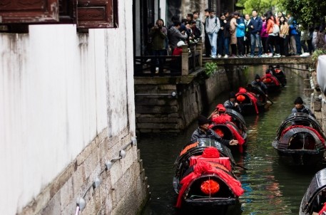 整个水上婚礼过程,将乌篷迎亲的传统水乡婚俗一一呈现,受到了游客的喜爱,他们纷纷加入水上巡游的队伍。接下来,水城公司还将在4月的每个周末,继续演绎浪漫的水上婚礼。