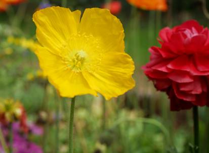 会稽山林间黄金菊、蝴蝶花、三色堇、金雀儿、瓜叶菊等小野花陆续开放,形成了恬淡、静美的苑林美景。在苍松翠柏间,五颜六色的山花烂漫,将春天的会稽山点缀的多彩多姿,分外妖娆,连空气都带着一丝舒畅。