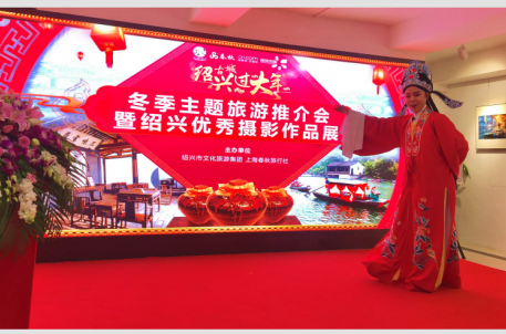 推介会在一曲悠扬婉约的越剧表演后拉开帷幕,160名主题旅游客户代表和20余家主要媒体齐聚一堂,现场共同感受绍兴古城浓郁的水乡古城年俗风情。游客中心贺知民向与会嘉宾作了“新时代 美生活”绍兴古城过大年主题旅游活动的推介,详细的介绍了春节期间绍兴文旅集团下属各大景区精彩纷呈的主题旅游活动,推介同时还与现场嘉宾进行了互动及抽奖,现场的气氛就和过年一样喜气。上海春秋旅行社围绕绍兴古城过大年的冬俗特色,特别包装策划了四款主题旅游产品在推介会上隆重发布,绍兴文旅集团副总经理仲丽华、上海春秋旅行社副总经理周卫红、上海春秋旅行社主题活动部总经理周详、集团市场营销部经理应锋,以共同拉开画卷的方式启动“绍兴古城过大年”四大主题旅游产品的上市及《绍兴优秀摄影作品展》的开幕,画卷打开后四大主题旅游产品唯美地展示在嘉宾面前,并推出了其中一款推介会特价产品当场售卖,受到了嘉宾的热捧。活动结束后嘉宾们还参观了“首届国际旅游摄影大赛”一年来收集的60多幅《绍兴优秀旅游摄影作品展》,在摄影展中勾起了赴绍出游的欲望,纷纷向现场工作人员咨询绍兴春节旅游的行程安排。
