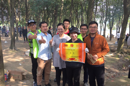 为提高广大员工的参与积极性,本次登山活动以随机抽签的形式,分成了灰、粉、黄、绿、红、蓝、橙七个小团队,以团队为形式开展登山比赛。团队需全员统一出发攀登,最终以小组全员登顶才算完成比赛,用时最短的三组将获得奖品。