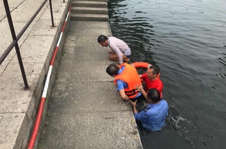 9月19日下午,东湖景区陶社水域出现了“惊险一幕”:一名游客“不慎”落水,就在5分钟里,该落水游客被景区工作人员迅速救起上岸,并对该游客进行了心肺按压。原来,眼前的这一幕是东湖景区正在进行抢救落水游客的演练,此次演练主要针对的是游客在乘船过程中经常出现的站立、摇晃等现象,通过对游客落水后船工的现场的及时施救,救生员的及时抢救,以及巡逻保安的及时上报情况及救援反应等各方面进行演练。参与救援的人员反应迅速,救援及时,此次救援演练得到了圆满成功。