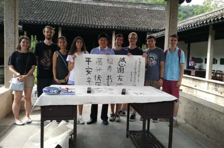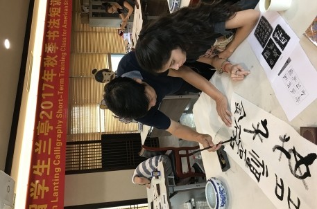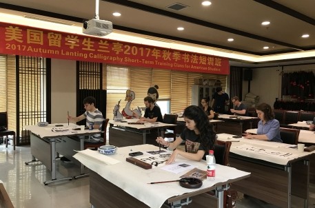 美国塔夫茨大学与兰亭景区合作举办“美国留学生秋季书法短训班”,自2004年开课至今已有13个年头了。带队的杨杰博士年年都来,对兰亭已有非常深厚的情谊。他表示:“每年来绍兴,总是那么的熟悉亲切,虽然只有短短几天,但这座城市的人文历史和文化底蕴,让同学们依依不舍。最让他们印象深刻的,莫过于在兰亭上这堂内容丰富、形式独特的书法课,特别是他们拿到结业证书时,喜悦溢于言表。”