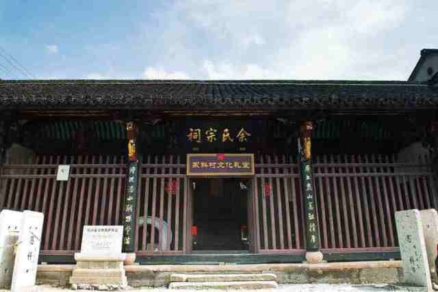 村口不远处便是余氏宗祠,它建于清朝乾隆年间,坐北朝南,由前后两进和东西看楼组成,内置一个古戏台,这座古戏台建筑考究,雕饰华丽。每年的农历十二月十六日是村里祭禹的日子,地点就在余氏宗祠里。
