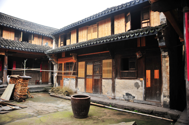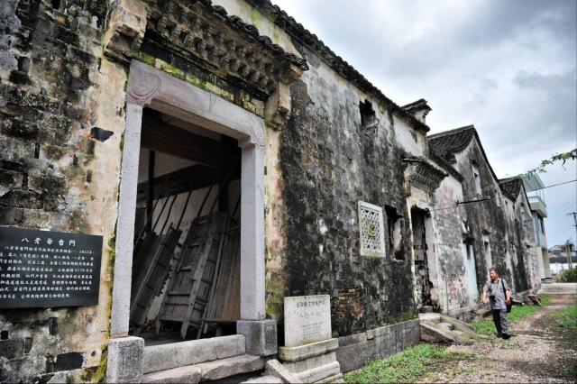 从余氏宗祠出来,一路可以参观还保存完好的明清时期建造的6座古台门:老台门、新台门、上大院、下新屋、朝西台门、高新屋台门,这些古台门如今依然是村民们的寄居之所。虽然屋子周围堆放着柴火、农具等不少杂物,看上去有些破旧与凌乱,但是从房屋的整体结构,从石刻、木雕等许多细节处,我们依然可以找寻到它曾经的辉煌。