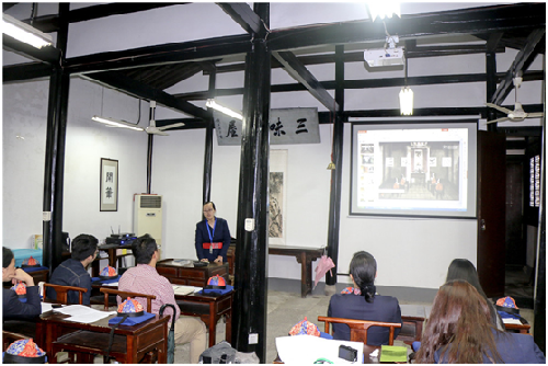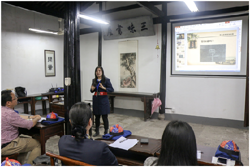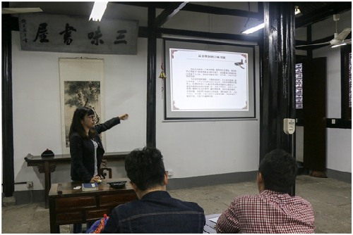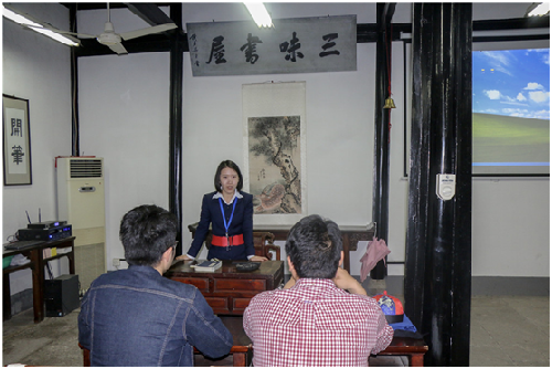 比赛内容包括研学旅游游线规划、“三味早读”课程设计、课件PPT制作以及研学游教室陈列布置。比赛要求内容新颖丰富、互动性强,并具有可操作性。讲解员们积极参与、精心准备,各显风采。结合日常研学旅游带团、讲解经验,讲解员们提出合理安全的旅游线路,创新性的“三味早读”课堂内容,提出增加了对课、描红习字、明影描绣像、拓印“早”字等环节,重现鲁迅儿时求学的场景,并充分利用多媒体课件的多样新,采用图片、视频、音乐等直观形式展示。比赛现场“百花齐放,百家争鸣”。