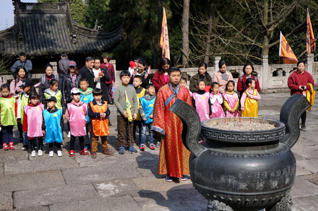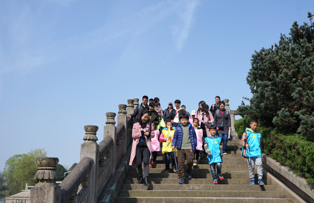 春意盎然,今日会稽山景区游人如织。上午9时许,祭禹广场上就聚集了许多亲子游的家庭。