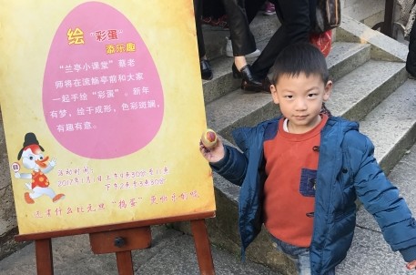 一位来自江苏的小男孩找到鹅蛋后兴奋极了,他说,‘知道鹅池有大白鹅,没想到还能找到鹅蛋,这次兰亭行太有意思了。’随后,他还参与了“绘彩蛋”活动,表示回去要好好的珍藏它。